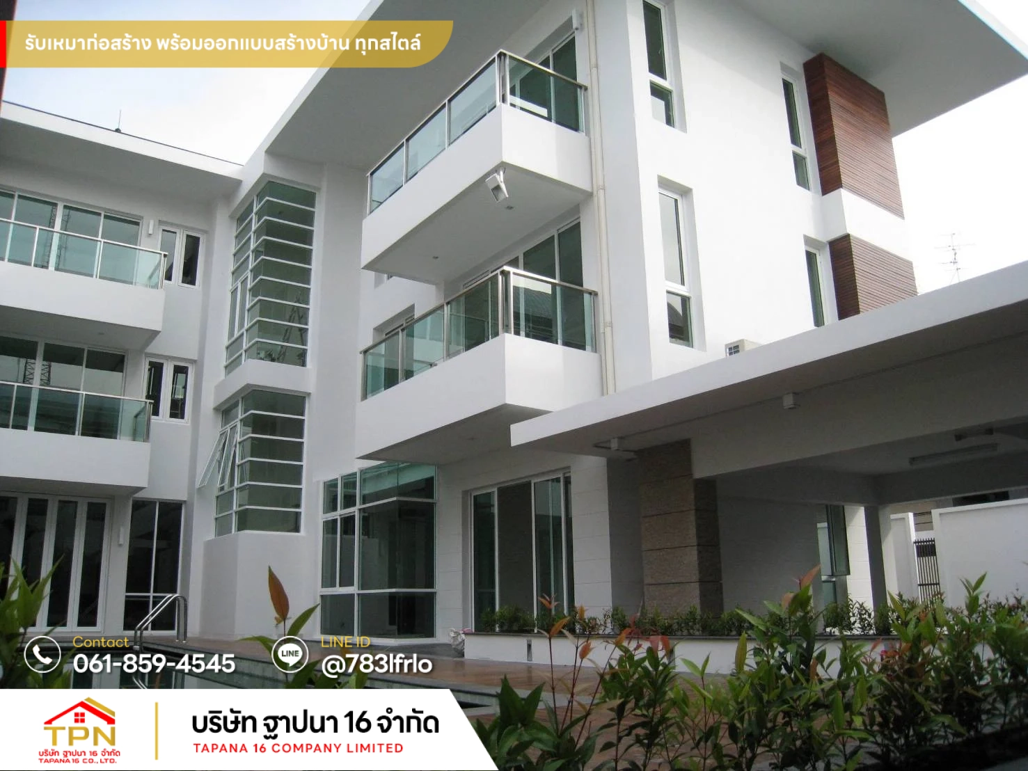 รับสร้างบ้าน รับเหมาก่อสร้างครบวงจร ตั้งแต่งานออกแบบ งานโครงสร้าง งานสถาปัตยกรรม งานสาธารณูปโภค และ งานระบบต่างๆ
