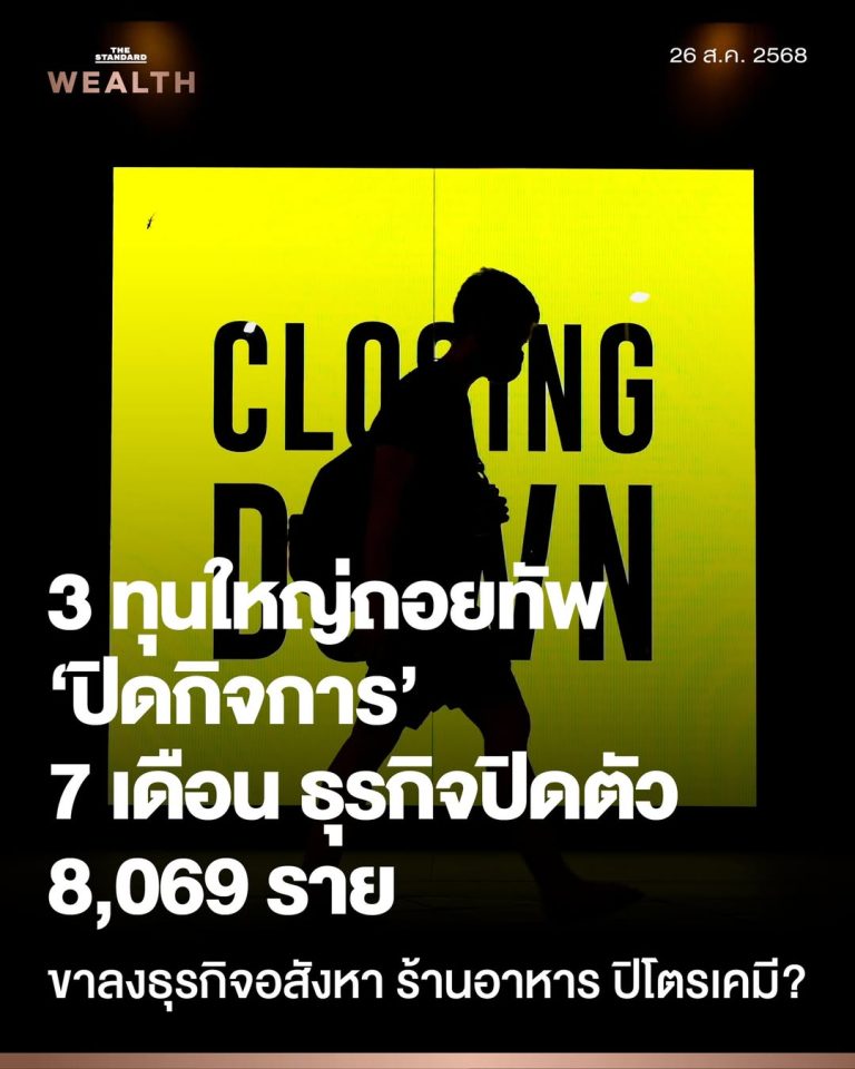 UPDATE: เปิดชื่อ 3 ทุนใหญ่ถอยทัพปิดกิจการ วิเคราะห์ทำไม 7 เดือน ธุรกิจปิดตัวกว่า 8,069 ราย แต่ยอดเปิดใหม่ยังพุ่ง 1.7 แสนล้าน