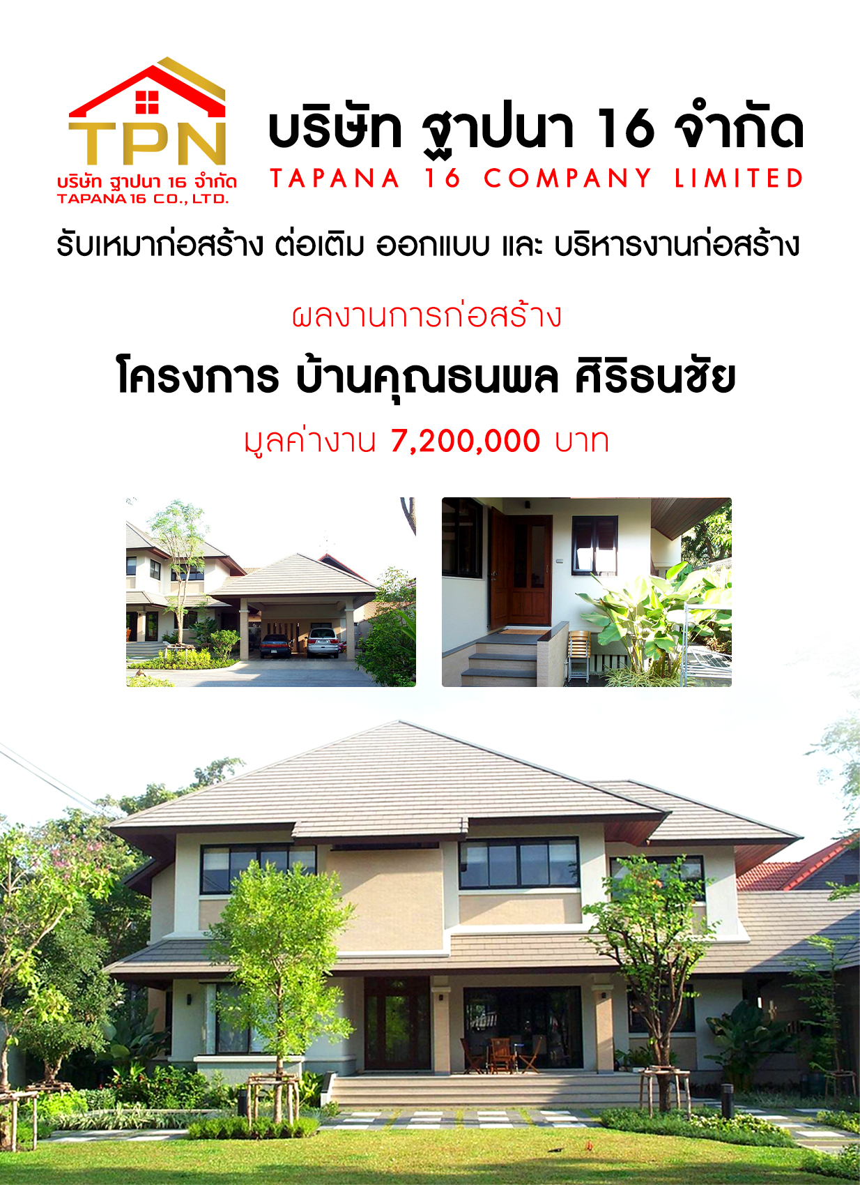 กว่า สี่ทศวรรษของการเดินทางในวงการรับเหมาก่อสร้างและออกแบบบ้าน บริษัท ฐาปนา 16 จำกัด (TAPANA 16 COMPANY LIMITED) คือชื่อที่ได้รับการยอมรับในฐานะ “ผู้เชี่ยวชาญด้านการรับสร้างบ้านระดับพรีเมียม” ที่เข้าใจทั้งศาสตร์แห่ง “สถาปัตยกรรม” และ “วิศวกรรม” อย่างลึกซึ้ง เรามุ่งมั่นสร้างบ้านที่งดงามเหนือกาลเวลา บ้านที่ไม่ได้เป็นเพียงที่อยู่อาศัย แต่คือ “ผลงานศิลปะที่มีชีวิต” ซึ่งสะท้อนรสนิยม ความสำเร็จ และตัวตนของเจ้าของบ้านแต่ละท่านอย่างแท้จริง